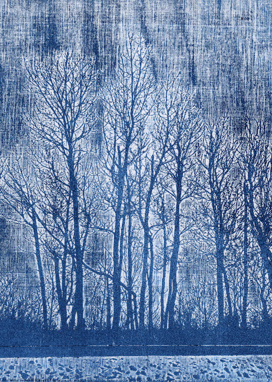 / Mixed media : embossing with photopolymer plate, ink, colored pensils and embroidery