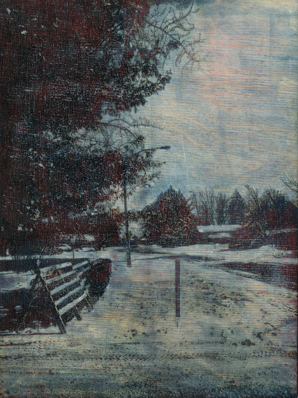 Bois gravé au laser, encre et pastel / Laser engraved wood, ink and pastel
